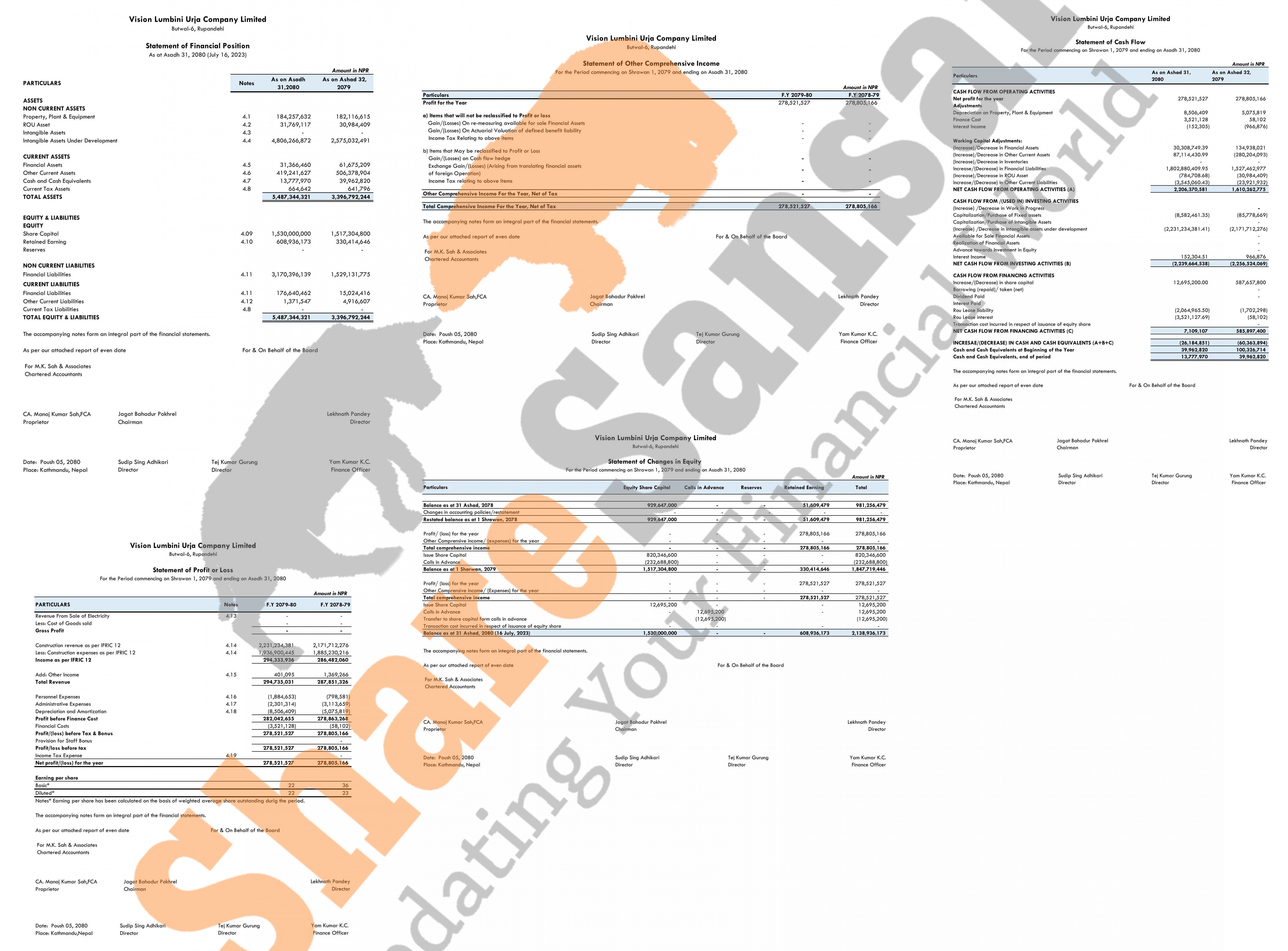 Vision Lumbini Urja Company Limited has published its annual financial statement of the fiscal year 2079/80.