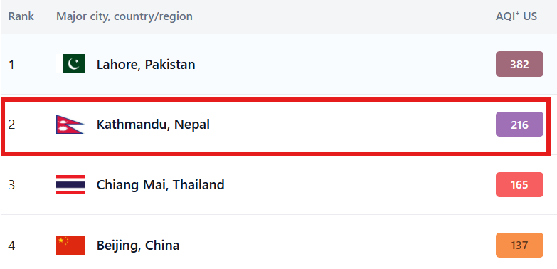 Red Alert: Kathmandu Climbs to Second Most Polluted City on Earth