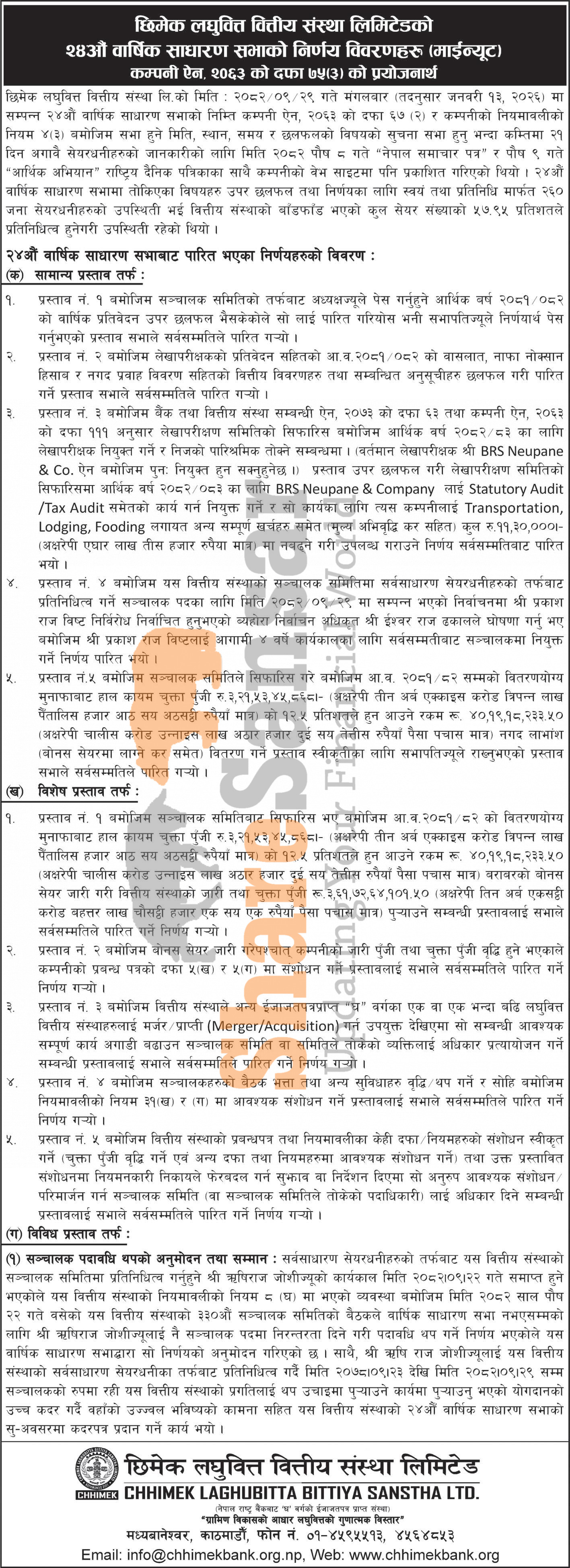 Chhimek Laghubitta Bittiya Sanstha Limited has published the minutes of its 24th AGM.