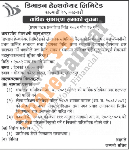 Divine Healthcare Limited has announced its AGM going to be held on 10th Magh, 2082.