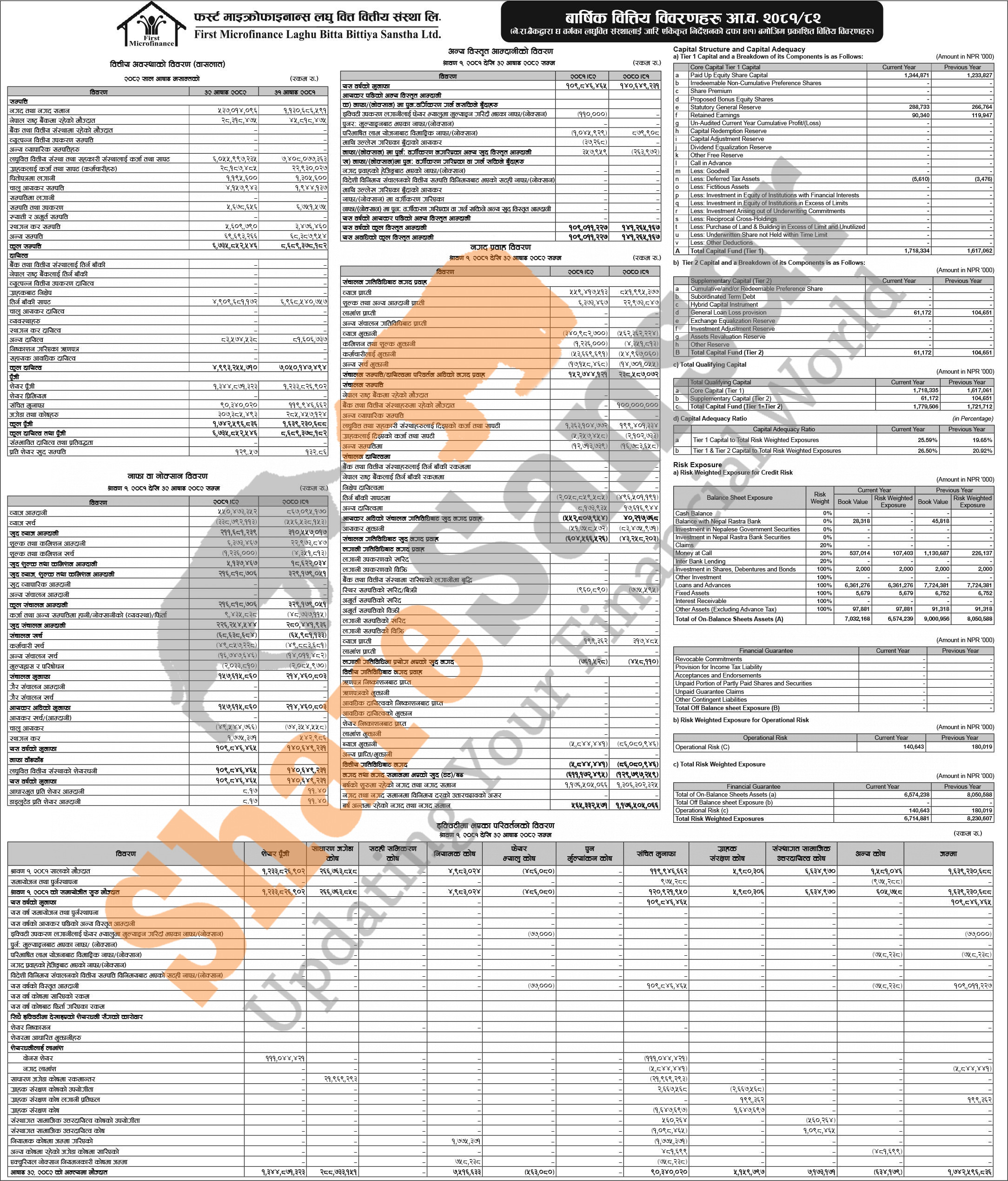 First Microfinance Laghubitta Bittiya Sanstha Limited has published its annual financial statement of the fiscal year 2081/82.