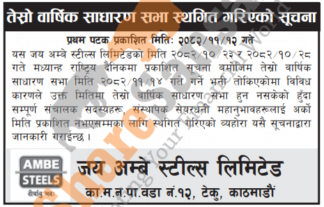 Jay Ambe Steels Limited has postponed its 3rd AGM until further notice.