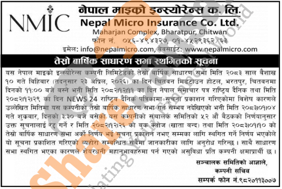 Nepal Micro Insurance Company Limited has postponed its 3rd AGM until further notice.