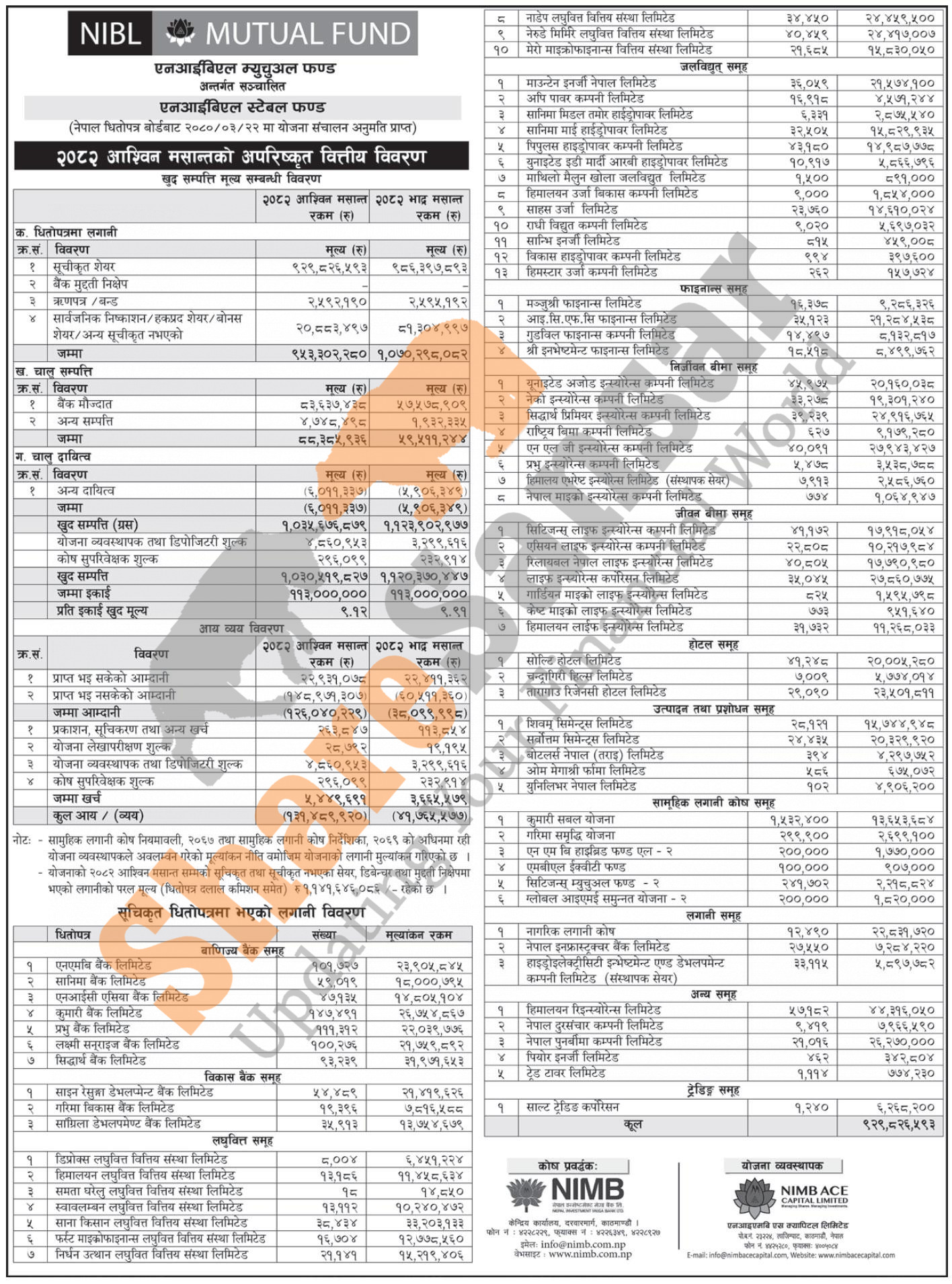NIMB Ace Capital Limited has published “NIBL Stable Fund” Net Assets Value (NAV) till Ashwin, 2082.