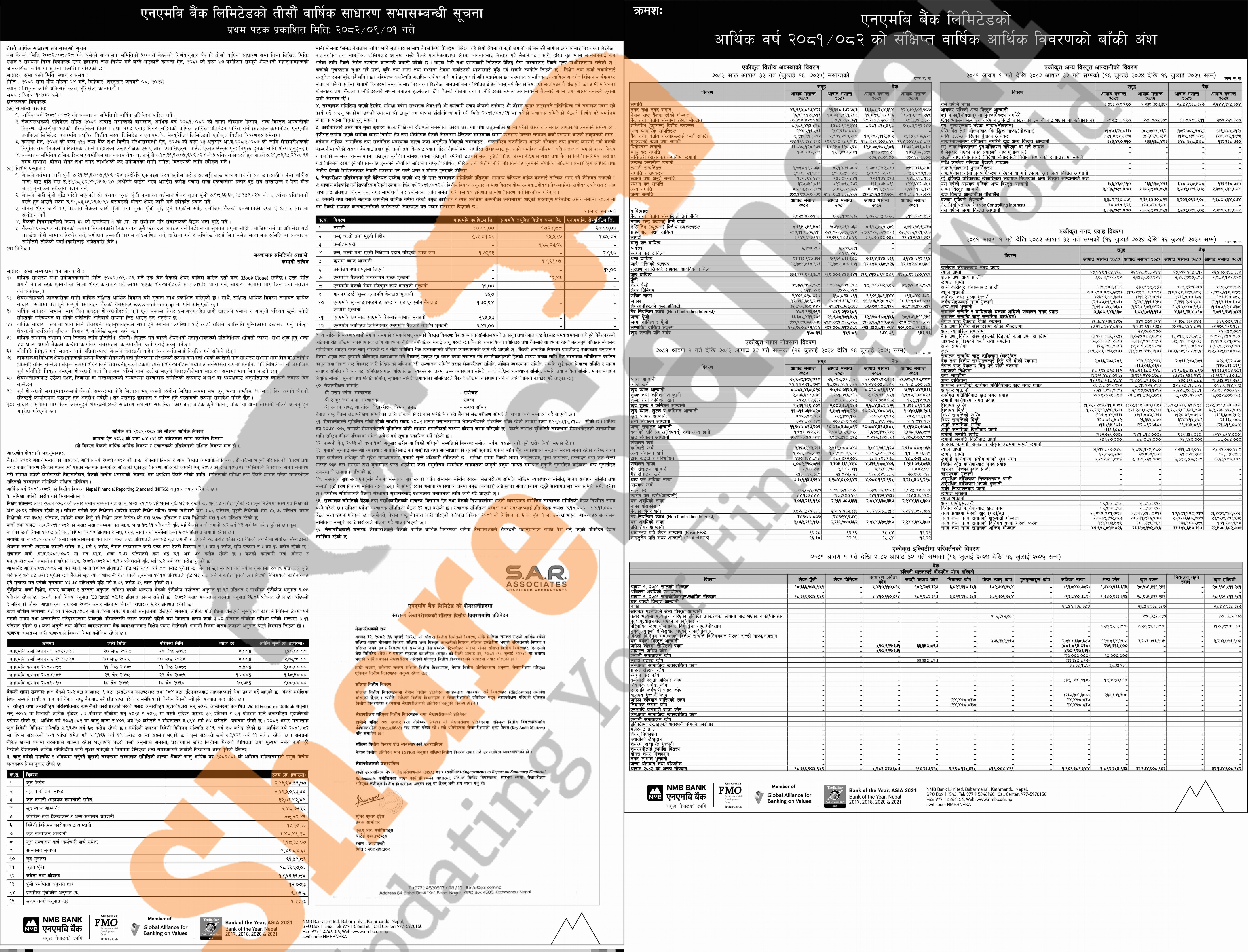 NMB Bank Limited has announced its 30th AGM going to be held on 24th Poush, 2082 and published its annual financial statement of the fiscal year 2081/82.