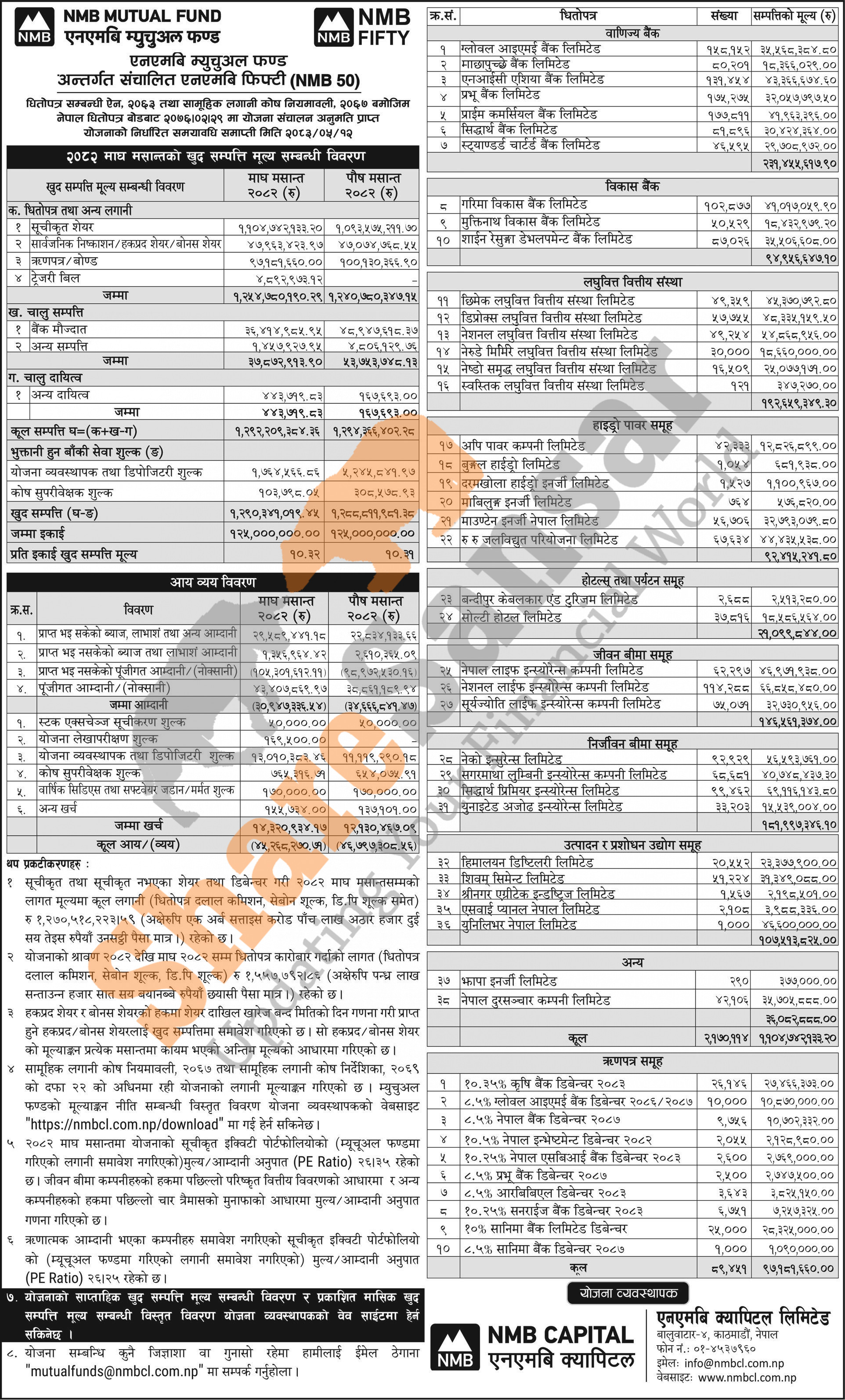 NMB Capital Limited has published "NMB 50" Net Assets Value (NAV) till Magh, 2082.