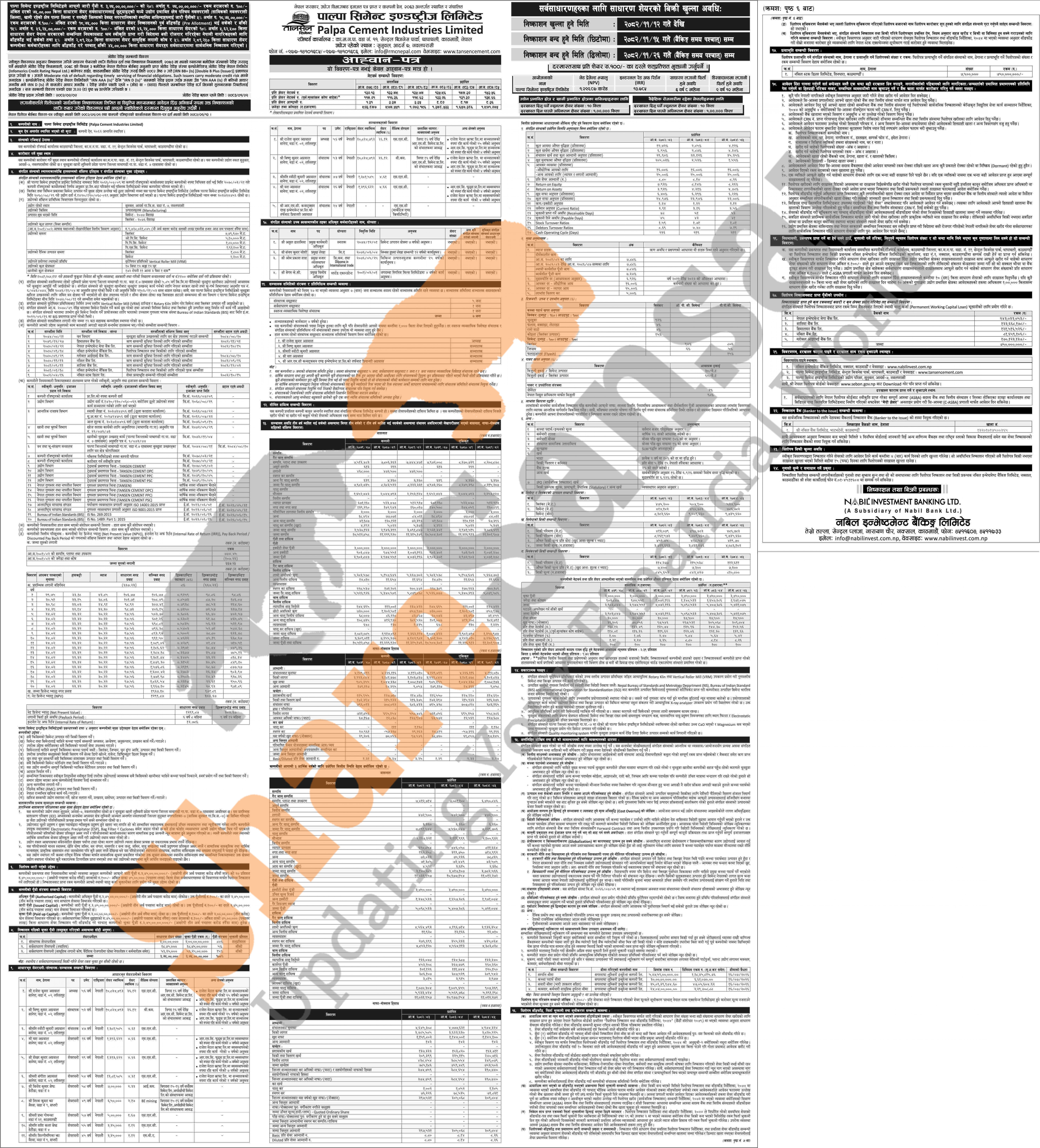Palpa Cements Industries Limited has published an offer letter to issue 45,00,000 units IPO shares to the general public from 12th Falgun to 15th Falgun, 2082.