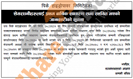 PK Hydropower Limited has postponed its 1st AGM until further notice.