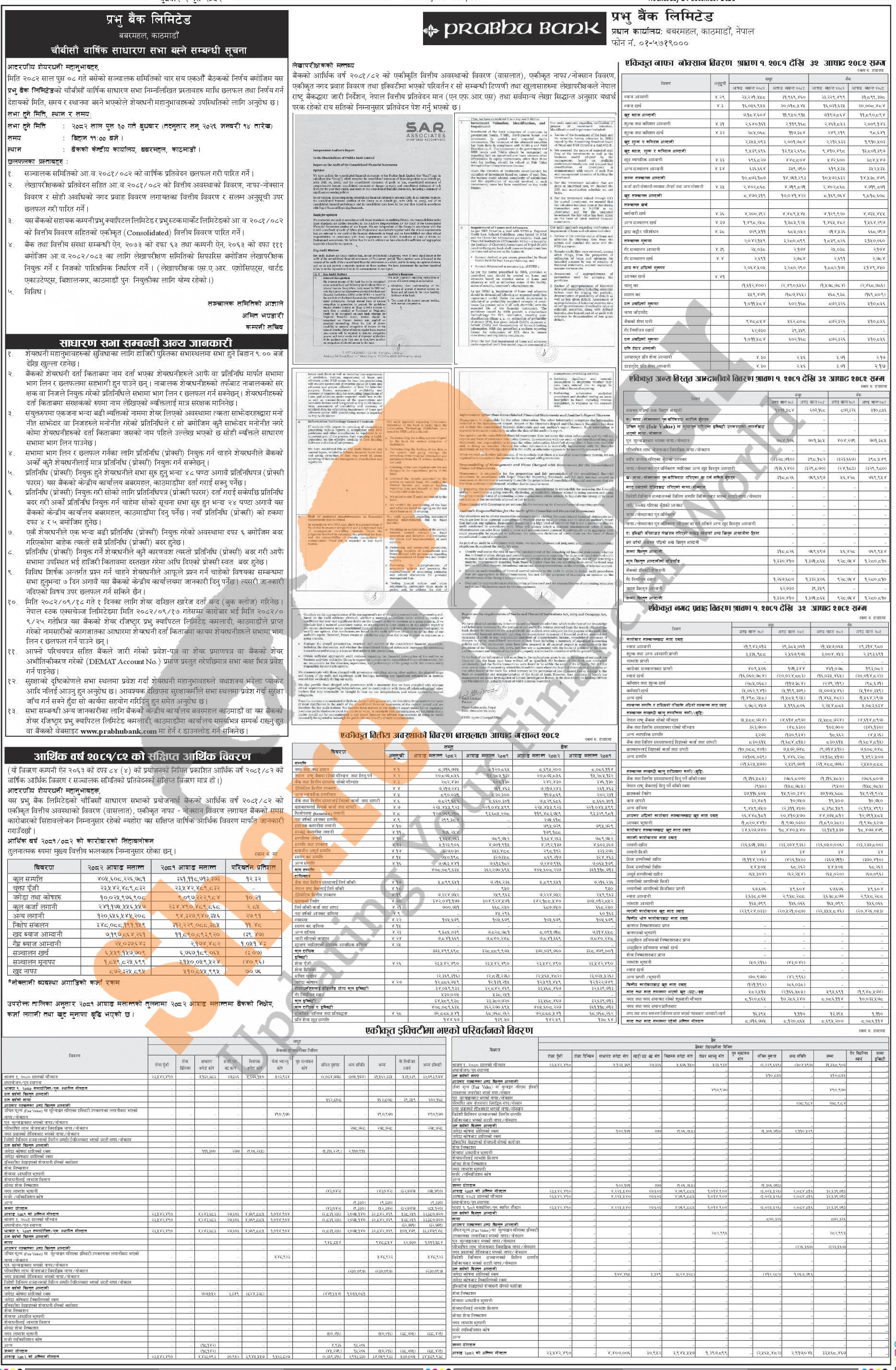 Prabhu Bank Limited has announced its 24th AGM going to be held on 30th Poush, 2082 and has published its annual financial highlights of the fiscal year 2081/82.