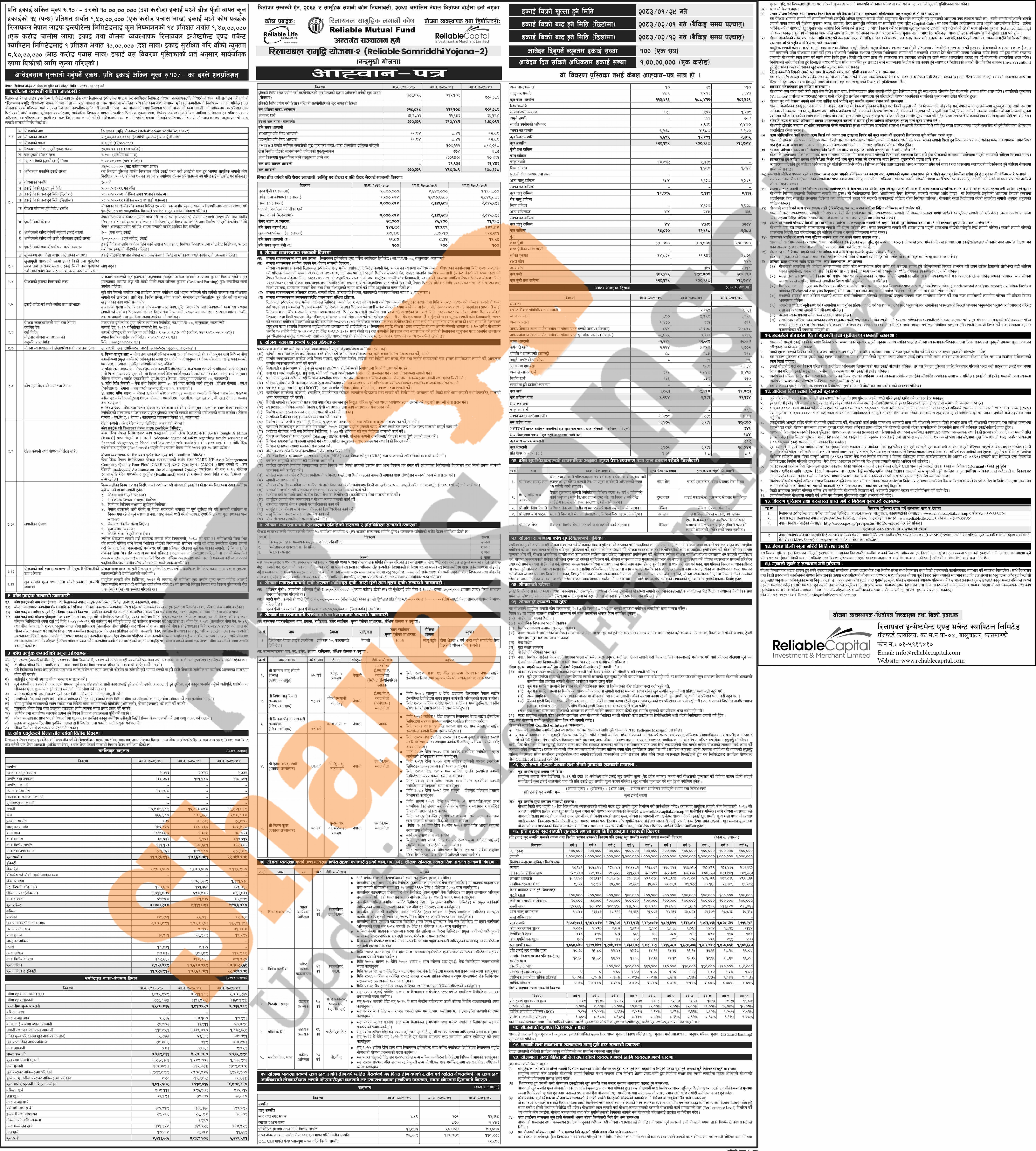 Reliable Investment and Merchant Capital Limited has published an offer letter to issue 100 million units of Rs 10 face value each mutual fund scheme "Reliable Samriddhi Yojana-2" to the general public from 29th Baisakh to 1st Jestha, 2083.
