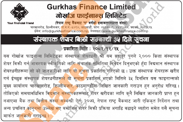 The existing promoters of Gurkhas Finance Limited is selling 2,000 shares to its promoter shareholders.