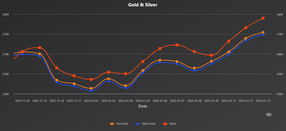 Gold and silver prices in Nepal have hit new historic highs, continuing a back-to-back surge in the domestic market.