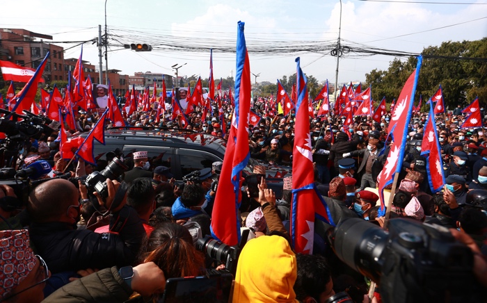 The supporters of the ex-king who had already gathered at the site for the celebrations of the birth anniversary of the nation builder offered him a warm welcome.
