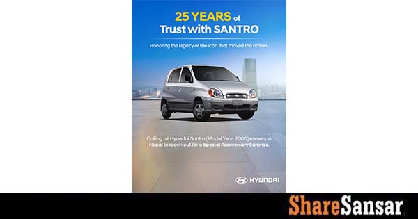 With its practicality, comfort, reliability, and suitability for Nepali roads and families, Santro reshaped perceptions of hatchback cars and laid the foundation for Hyundai’s success in Nepal. As Hyundai celebrates 25 years of Santro in Nepal, the company honors the legacy of trust it built and invites owners of 2000 model-year Santro cars to connect with Hyundai Nepal for a special surprise.
