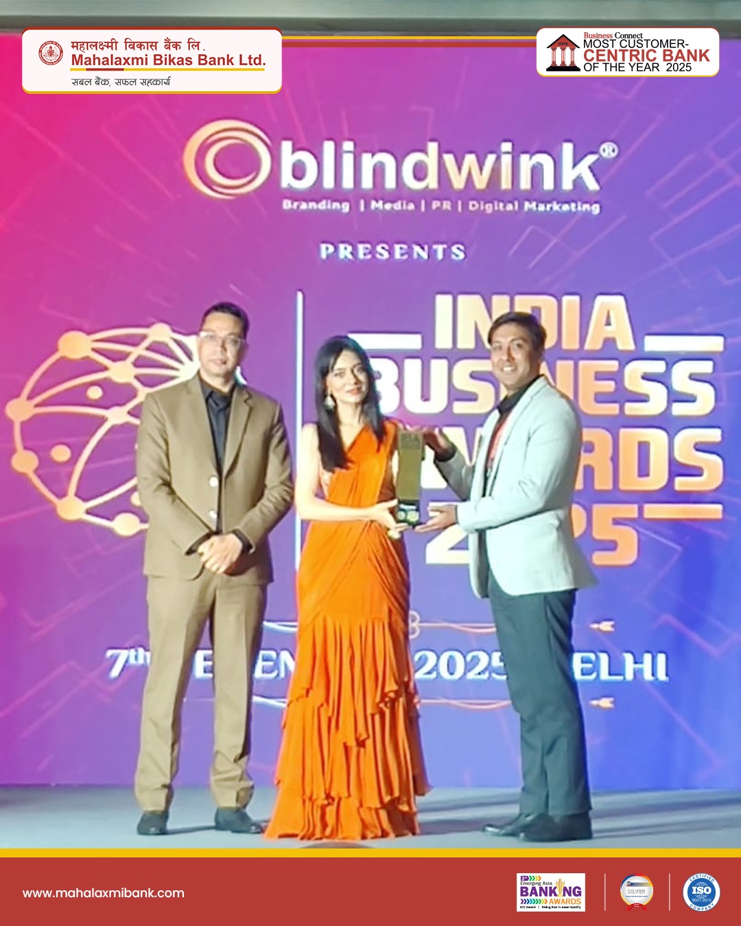 Mahalaxmi Bikas Bank Limited (MLBL) has been honored with the “Excellence in Banking Innovation and Customer Delight” award at the India Business Awards 2025 held in New Delhi on December 7, 2025. The award recognizes the bank’s innovations in banking services, strong leadership, brand reputation, customer trust, media presence, and corporate social responsibility.