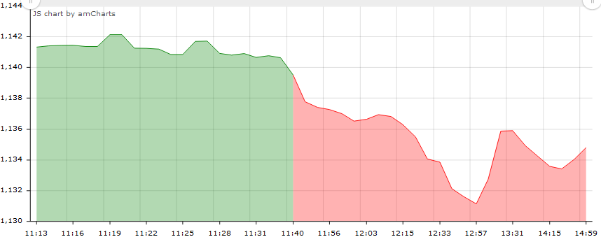 Market falls for the fourth consecutive day to close at 1134.80 points; both newly listed companies hit the negative circuit today