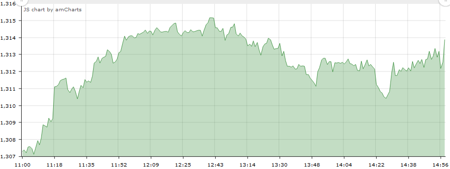 The market today was in the green zone for the whole day. The benchmark index gained 0.64% or 8.39 points and closed at 1313.88 points. The turnover stood at Rs.90.08 Crore achieved from trade of 2,628,420 units of shares traded through 10,415 transactions trading scrips of 173 listed companies in the process.