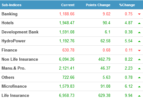 Banking and Finance sector ended in the red zone after losing 0.75% and 0.11% respectively. Rest of the sub-indices gained points.