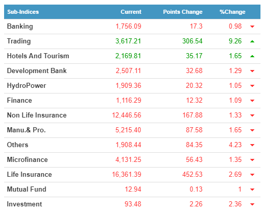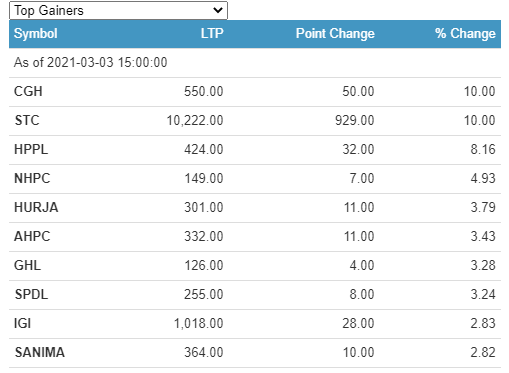 Salt Trading Corporation Limited (STC) and Chandragiri Hills Limited (CGH) have technically hit the 10% positive circuit today. Meanwhile, Asian Life Insurance Company Limited (ALICL) lost the most 6.36%.