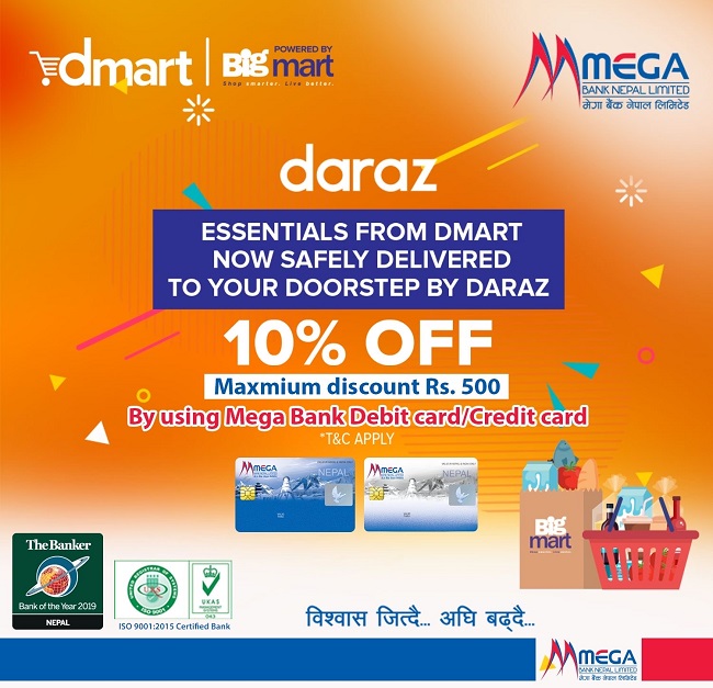 Mega Bank has partnered with Daraz, the online shopping service, to provide 10% discount for its card customers while making payment during their online shopping.