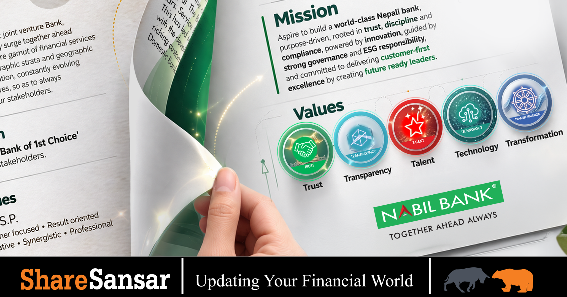 Nabil Bank Limited has unveiled a refreshed vision, mission, values, and tagline at the start of the Nepali New Year 2083. The bank aims to become Nepal’s most trusted and future-ready institution, focusing on innovation, governance, ESG responsibility, and customer-centric services.
