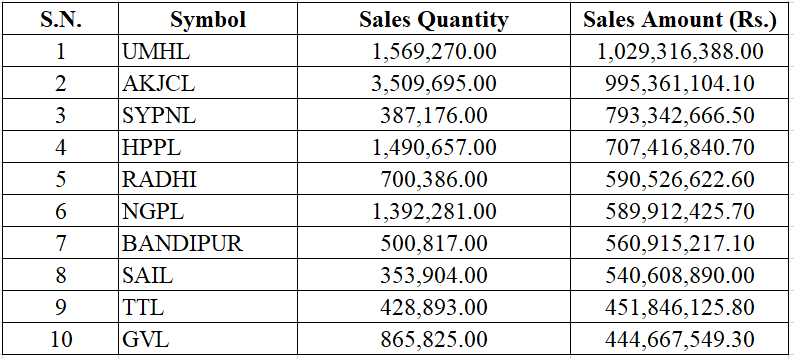 Naasa Securities Co. Limited (Broker No.- 58) was the top seller broker for this week. The brokerage firm has sold stocks worth Rs. 4.79 Arba.