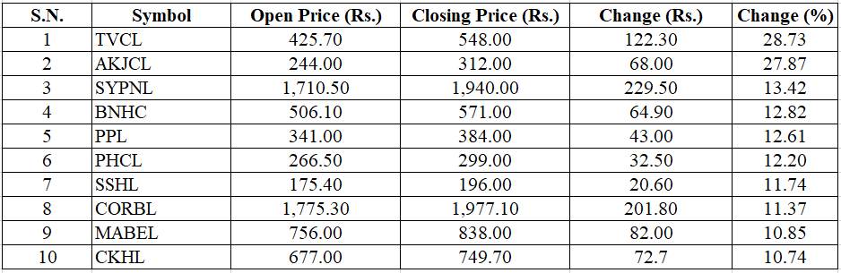 The highest intraday gain was 57.56 points on Sunday, with a turnover of Rs 13.78 Arba; however, the total turnover for the week stood at Rs 70.36 Arba. Over 15.65 Crore unit shares have been traded through 6,84,556 transactions this week. The current market capitalization of NEPSE is Rs. 4,556,964.50 million, i.e., Rs 45.56 Kharba.