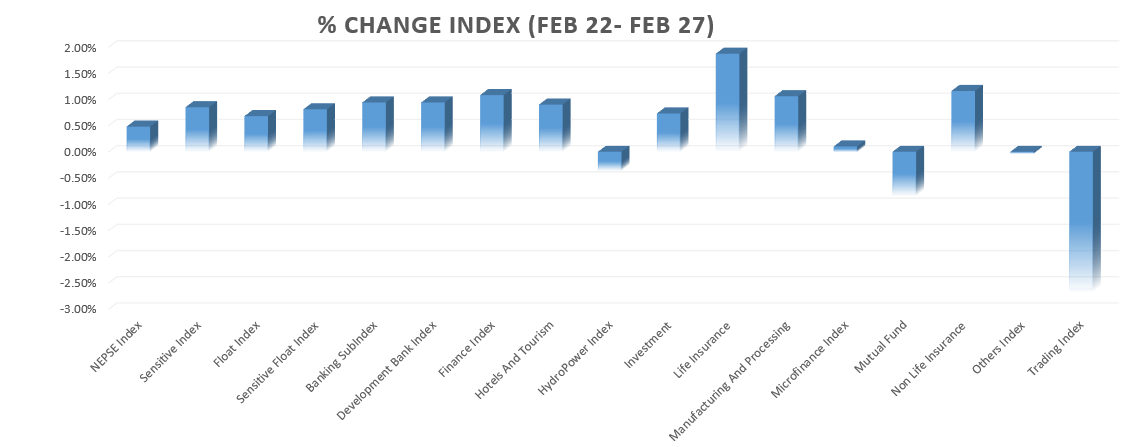 The NEPSE index increased by 0.48% this week. Only four sector indices are closed in the red.
