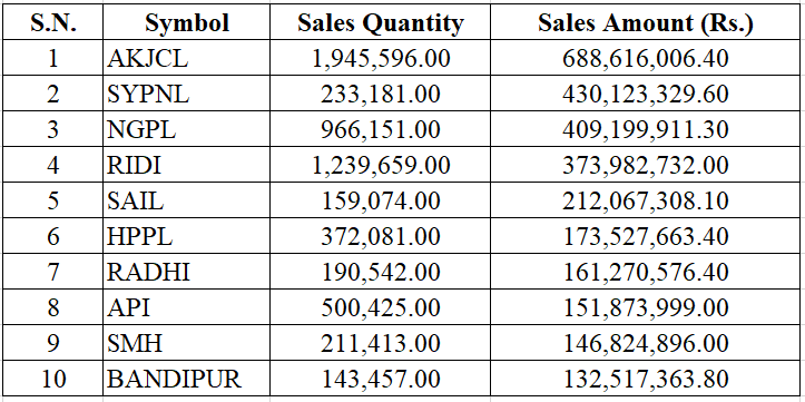 Naasa Securities Co. Limited (Broker No.- 58) was the top seller broker for this week. The brokerage firm has sold stocks worth Rs. 1.79 Arba.