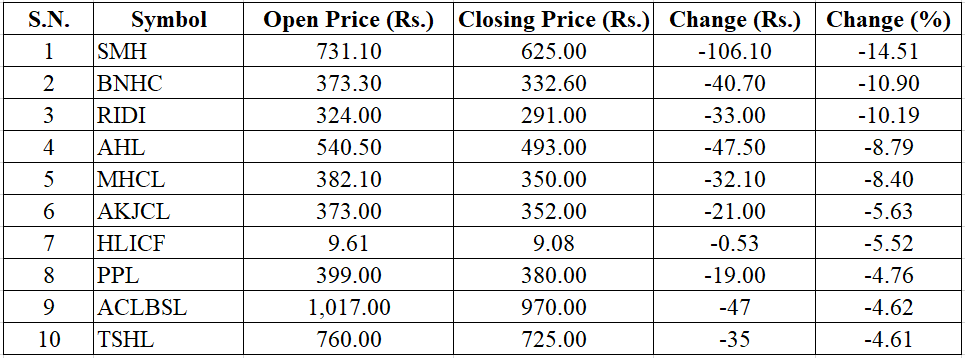 The Nepse Index is below the 20-day Exponential Moving Average and below the 5-day Exponential Moving Average. The Index below the moving average indicates earlier bearish sentiment.