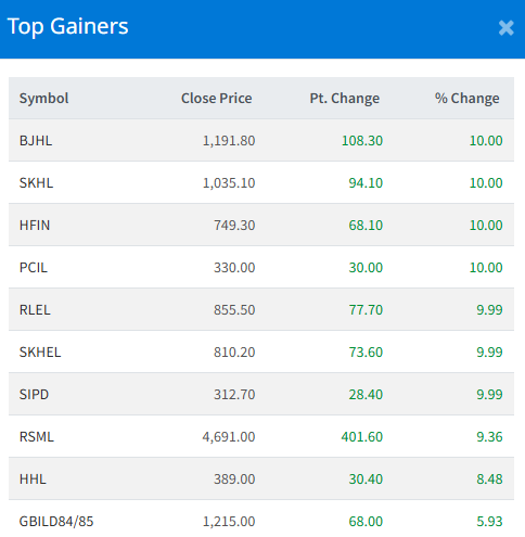 In today’s trading session, seven companies hit the positive circuit limit of 10%, including BJHL, SKHL, HFIN, PCIL, RLEL, SIPD and SKHEL.
