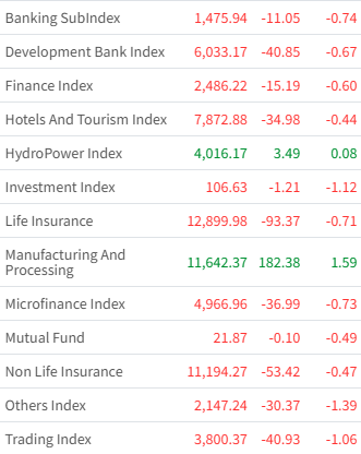 Out of thirteen indices, only two sectors closed in green. Among sectors, the Manufacturing And Processing registered the highest gain, gaining 1.59%, while the Others Index the highest loss at 1.39%.