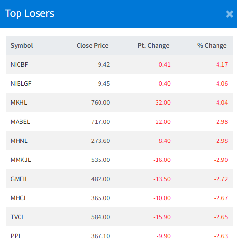 Meanwhile, NIC Asia Balanced Fund (NICBF) recorded the Highest fall, falling by 4.17% .