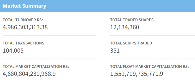 The benchmark index opened at 2771.25 and reached an intraday high of 2,774.16, while the day’s low stood at 2,734.33. Total turnover for the day amounted to Rs. 4.98 Arba, with 12,134,360 shares traded across 351 companies through 104,005 transactions. The total market capitalization stood at Rs. 46.80 Kharba, with a float market capitalization of Rs. 15.59 Kharba.