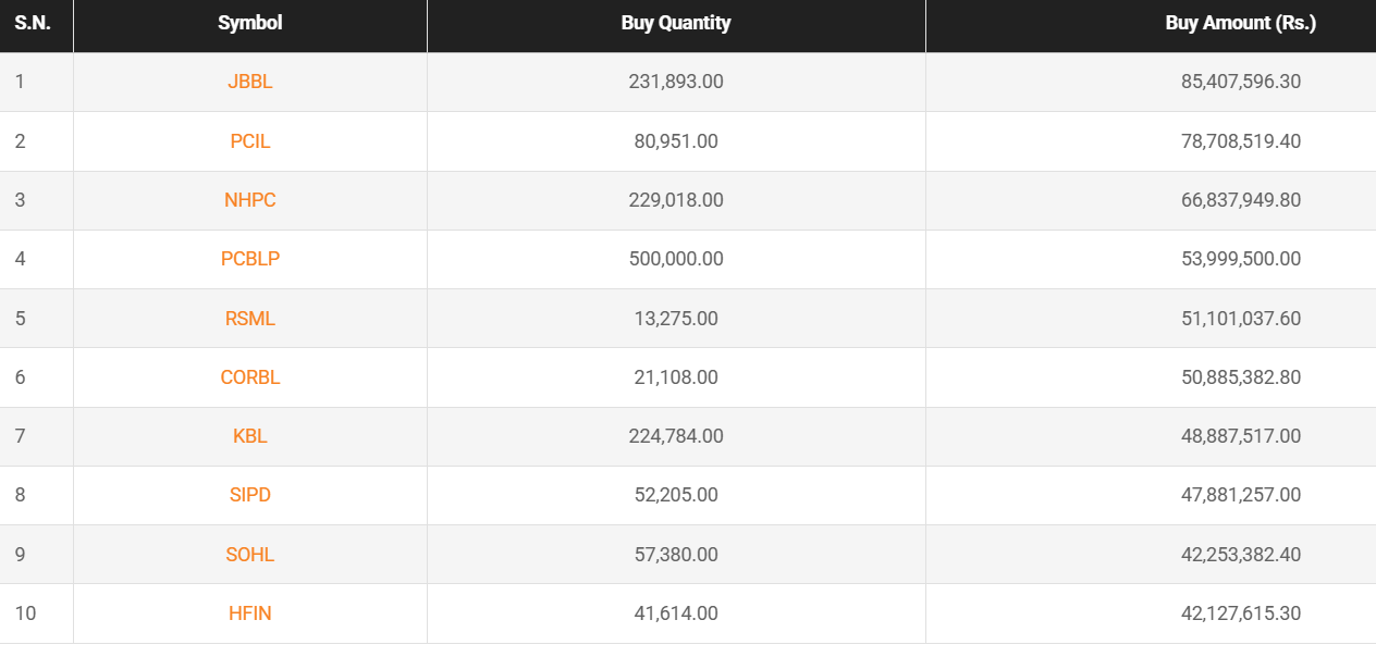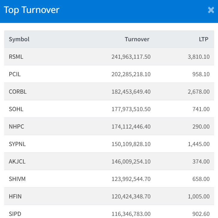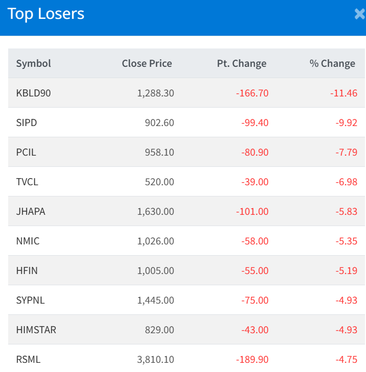Corporate Development Bank Limited (CORBL) Led the gainer's list with 13.81 %. The Stock closed at Rs. 2,678.00.