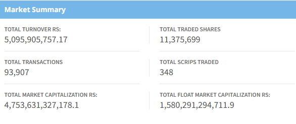 The benchmark index opened at 2,806.53 and reached an intraday high of 2,817.10, while the day’s low stood at 2,779.86. Total turnover for the day amounted to Rs. 5.09 Arba, with 11,375,699 shares traded across 348 companies through 93,907 transactions. The total market capitalization stood at Rs. 47.53 Kharba, with a float market capitalization of Rs. 15.80 Kharba.