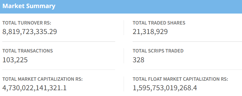 The benchmark index opened at 2,770.82, touching an intraday high of 2,808.96, while the lowest point was 2,740.22. Total turnover for the day reached Rs. 8.81 Arba, with 21,318,929 shares traded across 328 companies through 103,225 transactions. Market capitalization stood at Rs. 47.30 Kharba, with a float market capitalization of Rs. 15.95 Kharba.