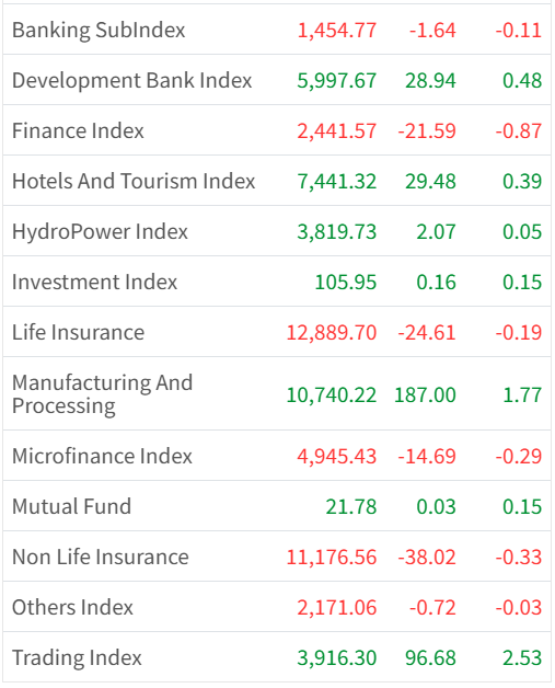 Among the sector Trading Index recorded the highest gain, gaining by 2.53% and meanwhile Finance Index recorded the highest fall, falling by 0.87%.