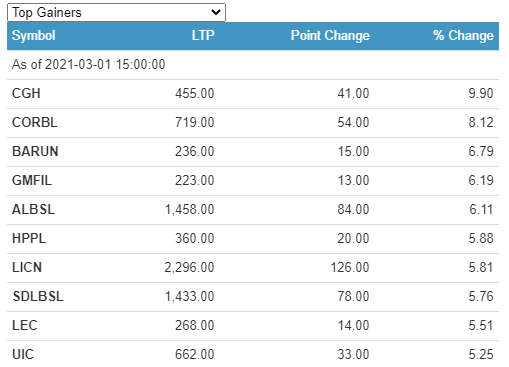 Chandragiri Hills Limited (CGH) has technically hit the 10% positive circuit today. Meanwhile, Citizens Mutual Fund - 2 (CMF2) has lost the most 1.84%.