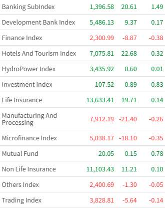 Among sectors,Banking SubIndex registered the highest gain, gaining 1.49%, while the Finance Index saw the highest loss at 0.38%.