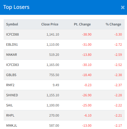 Meanwhile, 9% ICFC Finance Limited Debenture 2088 (ICFCD88) recorded the steepest drop, falling 3.30%.