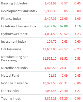 Among sectors, the Hotels And Tourism Index registered the highest gain, gaining 1.16%, while Other Index recorded highest fall, falling by 1.27%.