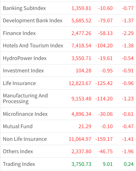 NEPSE Index Plummets by 26.05 Points to Settle at 2,672.39 Levels ; Only One Sector Closes at Green