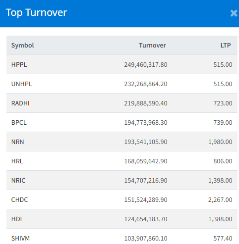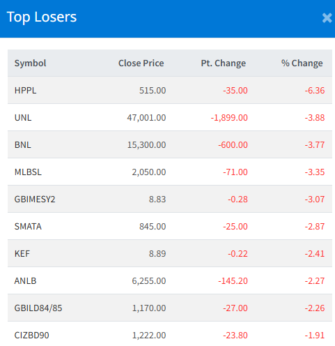 Meanwhile, Himalayan Power Partner Ltd. (HPPL) recorded the steepest drop, falling 6.36%.