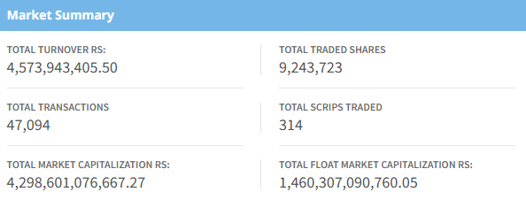 The benchmark index opened at 2506.96, touching an intraday high of 2,576.41, while the lowest point was 2,503.98. Total turnover for the day reached Rs. 4.57 Arba, with 9,243,723 shares traded across 314 companies through 47,094 transactions. Market capitalization stood at Rs. 42.98 Kharba, with a float market capitalization of Rs. 14.60 Kharba.