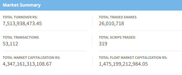 The benchmark index opened at 2568.41, touching an intraday high of 2,605.50, while the lowest point was 2,548.39. Total turnover for the day reached Rs. 7.51 Arba, with 26,010,718 shares traded across 319 companies through 53,112 transactions. Market capitalization stood at Rs. 43.47 Kharba, with a float market capitalization of Rs. 14.75 Kharba.