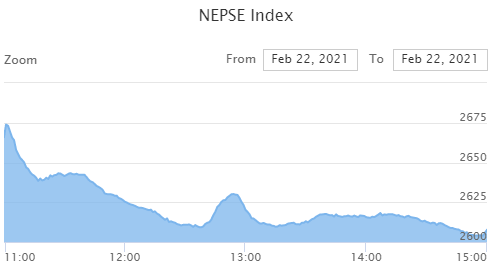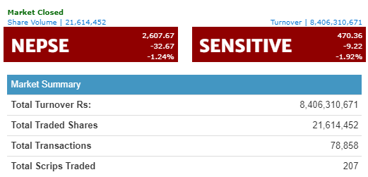 NEPSE Loses 32.67 Points and Closes at 2,607.67; Ten of Twelve Sectors Close Red