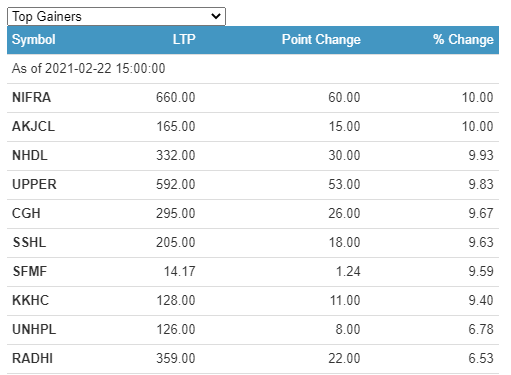 A total of 6 companies have technically hit the 10% positive circuit today. Meanwhile, Century Commercial Bank Limited (CCBL) lost the most 5.52%.