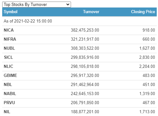 NIC Asia Bank Limited (NICA) has the highest individual scrip turnover of a little over Rs. 38.24 crores. The promoter shares of Prabhu Bank Limited (PRVUPO) traded the most.
