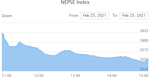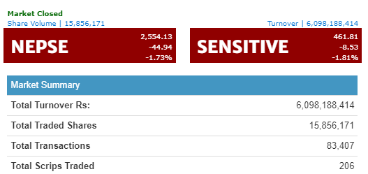NEPSE Loses 44.94 Points and Closes at 2,554.13 Today; All Sectors Close Red